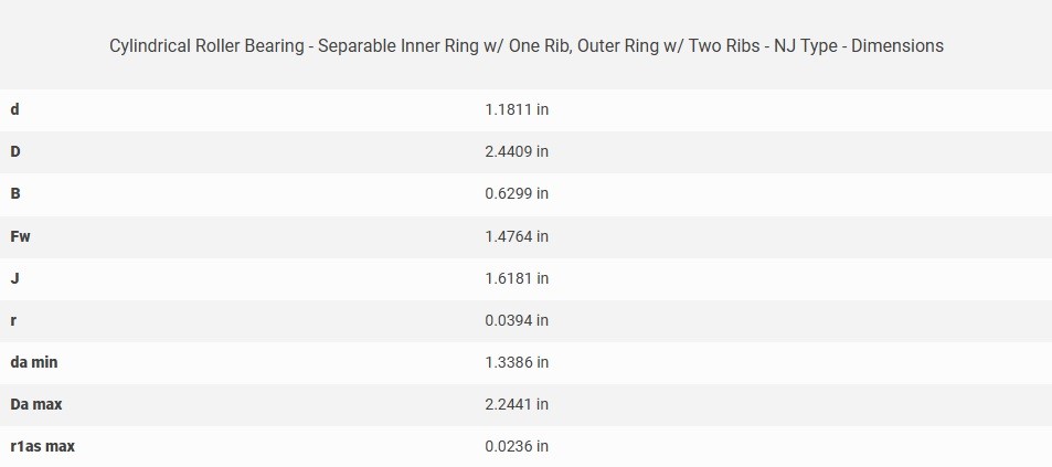 Thông số kỹ thuật vòng bi NTN đũa trụ một dãy NJ206ET2X