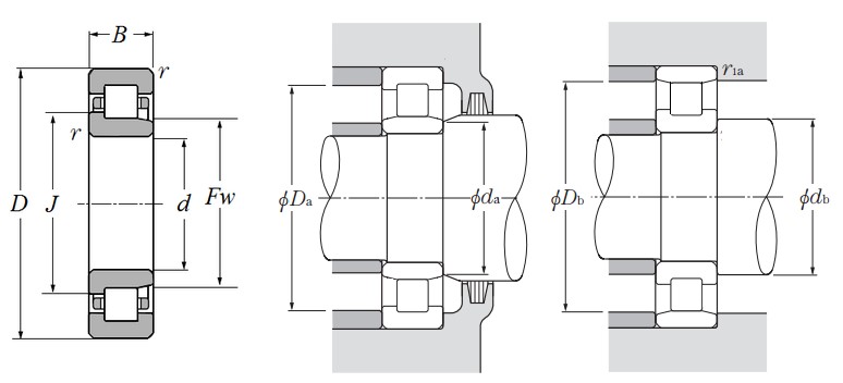 - NJ type: có gờ ở vòng trong → chịu tải trục một chiều